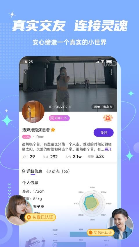 Fours情绪星球APP是一款专为现代年轻人打造的多元化兴趣社交平台,致力于为用户提供真实、高效的交友体验。在这里,你可以通过精准的兴趣匹配系统,快速找到志同道合的朋友,打破传统社交的局限。无论是分享生活点滴、寻找附近有趣的灵魂,还是通过语音视频互动建立更深层次的连接,Fours情绪星球都能满足你的需求。平台严格把控用户真实性,营造安全可靠的社交环境,让每位用户都能放心展示自我、结识新朋友。从文字聊天到视频互动,从动态分享到兴趣社群,丰富的功能设计让线上交友变得生动有趣,帮助单身人士轻松拓展社交圈,邂逅浪漫可能。