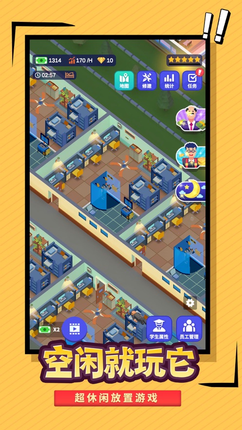 这是一款集模拟经营与休闲放置于一体的校园建设游戏。游戏采用经典3D场景设计,完美还原了校园生活的方方面面。作为私立学校的校董,你将肩负起提升教学质量、扩大学校规模的重任。游戏玩法轻松有趣,即使没有太多时间,也能随时上线管理学校。你可以制定独特的校规校纪,处理各种突发事件,完成丰富多彩的任务挑战。游戏还特别设计了学生互动系统,每个学生都有独特的性格特点,需要你因材施教。从课程安排到课外活动,从食堂菜单到宿舍管理,每个细节都考验着你的管理才能。