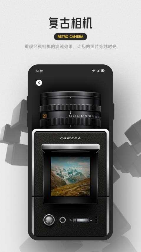 软件内置高级质感的复古相机功能,用户可随时使用它拍摄出充满怀旧风格的照片,无论是人像还是风景,都能呈现出独特的艺术效果,让每一张照片都充满故事感。