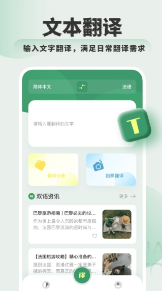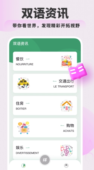 3,双语资讯板块为用户提供丰富的法国文化内容,包括时事新闻、旅游攻略和生活方式等。这些内容不仅帮助用户拓展国际视野,还能在旅行中提供实用参考。无论是餐厅点餐、交通出行还是景点参观,遇到的语言障碍都能轻松解决,让异国之旅更加顺畅愉快。