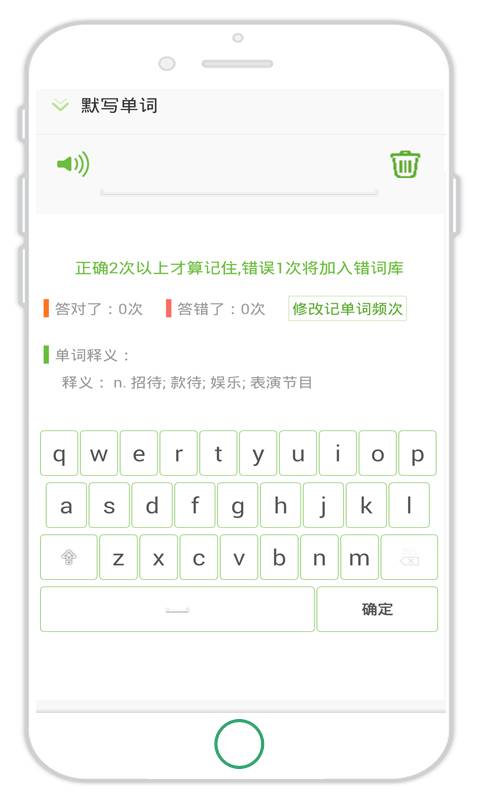 1、【错词库】智能记录用户练习过程中的错误单词,自动生成个性化错题集,通过间隔重复算法确保错误不再重犯。系统会根据错误频率自动调整复习强度,让薄弱环节得到重点突破。