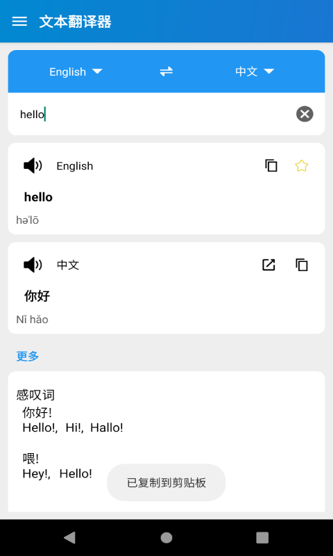 1、功能强大,翻译准确,还能自动读英语,操作,满足用户们中英文互译的需求,还能一键复制粘贴。智能上下文分析技术可以理解句子在特定语境中的含义,避免直译造成的误解,特别适合文学作品的翻译。