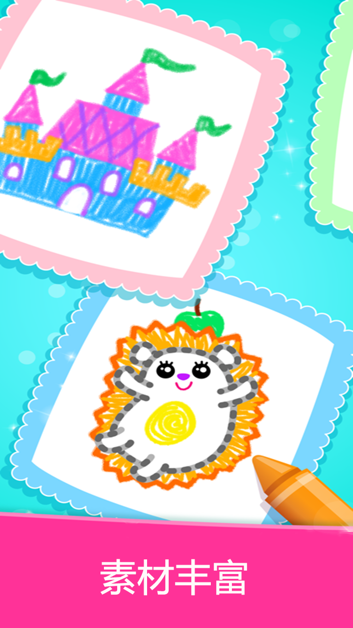 2. 提供蜡笔、水彩、贴纸等多种绘画工具,以及丰富的模板样式,让孩子轻松创作精美作品;