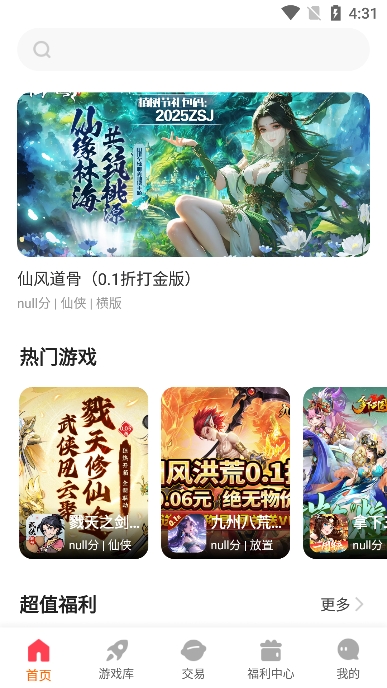 1、软件首页精心筛选推荐当前最热门的手游资源,每日更新排行榜单,让玩家随时掌握游戏潮流动态。2、平台整合各大游戏厂商最新福利活动,包括限时礼包、首充优惠等超值福利,玩家可一键领取。3、内置智能分类游戏库,按照游戏类型、热度、发行时间等多维度进行详细分类,支持关键词精准搜索。4、创新性地提供安全可靠的游戏交易平台,支持游戏道具、装备、账号等虚拟物品的在线买卖交易。5、专属福利中心汇集各类游戏活动入口和礼包兑换码,定期更新独家福利,提升玩家游戏体验。