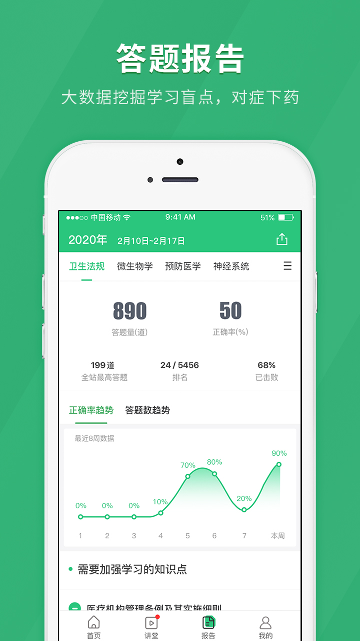 -智能题库,题库测评,智能化练习,保障学员考试通过率!题库总量突破10万道,包含历年真题、模拟题、押题三种类型,配备详细解析和考点延伸。独创"错题强化训练"模式,系统自动生成专属错题本,并定期推送同类题型巩固练习。新增"模考系统"支持全真模拟考试环境,考后生成详细能力评估报告。