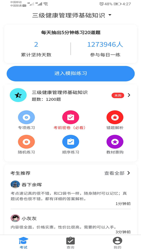 【历年真题】完整收录近年健康管理师考试真题,通过实战演练帮助学员把握命题规律。每套真题都配有详细解析,让学员在练习中掌握必考知识点,提升考试通过率。