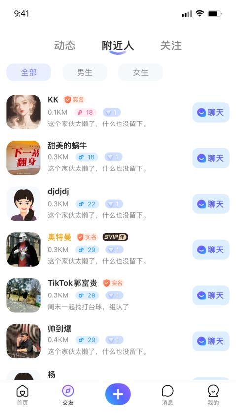 3、交友中心集成高级筛选功能,可按距离、年龄、兴趣等条件精准查找,支持多种聊天模式切换,让初识交流更加自然流畅;