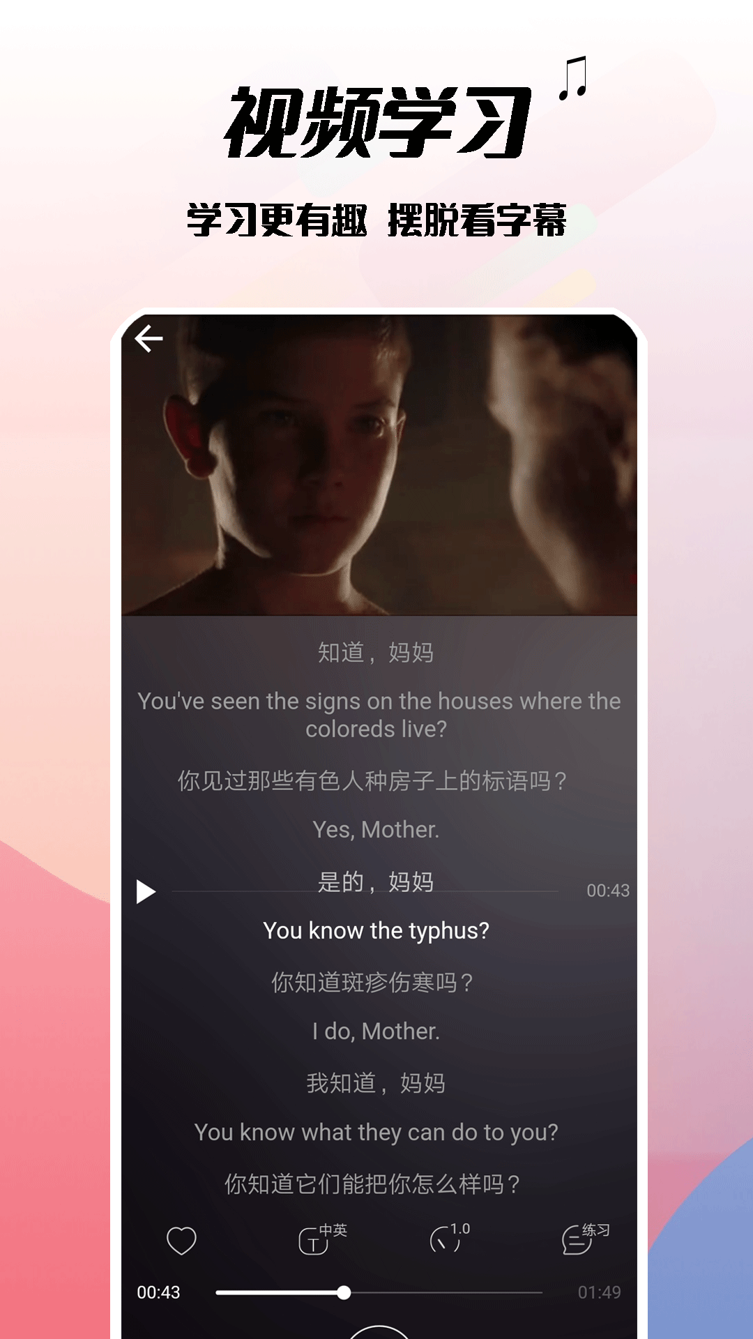 电影学英语,让语言学习告别枯燥!这款APP将影视娱乐与英语教学完美结合,通过真实场景对话帮助用户掌握地道表达。平台精选上千部优质影视作品,涵盖多种题材和难度等级,满足不同学习需求。创新的学习模式让用户在观影过程中轻松积累词汇、改善发音、提升听力,真正做到寓教于乐。特别设计的智能字幕系统能根据用户水平自动调节显示方式,让字幕从依赖变成辅助,最终实现无字幕观影的自由。