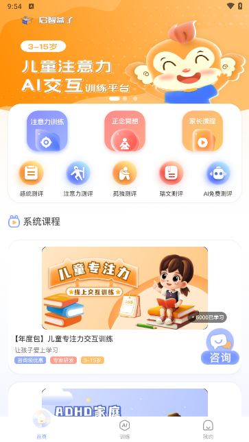 2、平台提供超过200种专业开发的专注力训练课程,涵盖视觉追踪、听觉分辨等多维度训练,课程内容由教育专家团队精心设计。