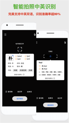 1、软件整合了80多万条中英文成语和短语,配合《新华字典》的权威内容,智能拍照识字功能让查询更加便捷高效。2、功能全面覆盖各类语言学习场景,启动速度快,内容专业权威,界面简洁无广告干扰。3、多语言智能识别系统支持中文、英文等多种语言的实时拍照翻译。4、集照片翻译、语音输入、快捷查询于一体,操作简单直观,完美适配学习、翻译、考试等不同场景需求。