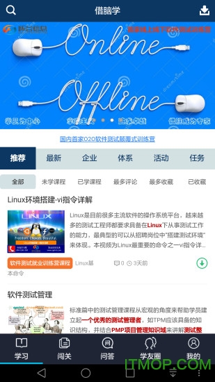 借脑学手机客户端是一款专为IT学习爱好者量身打造的高效学习工具。无论你是应届毕业生还是想要转行IT的职场人士,这款应用都能为你提供系统化的知识体系和丰富的学习资源。通过精心录制的视频课程、配套练习和互动问答,用户可以随时随地提升专业技能。应用涵盖编程、数据分析、网络安全等多个热门领域,帮助用户以最低成本实现快速成长。现在就前往IT猫扑下载,开启你的IT学习之旅吧!