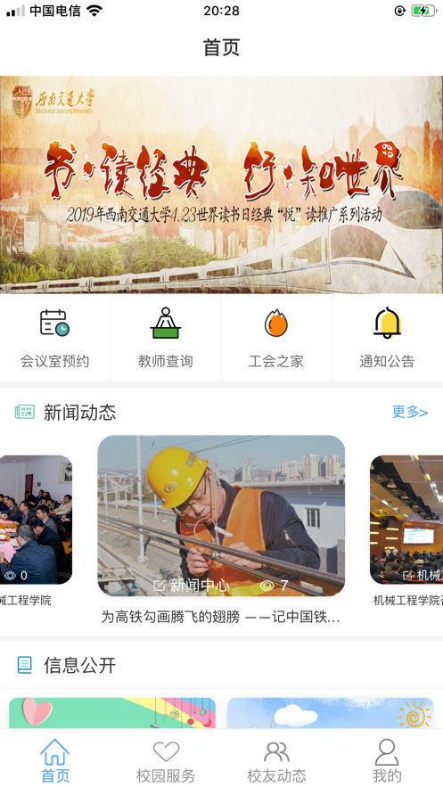 2、聚合校园资讯门户,分类展示学院动态、学术讲座、就业信息等内容,支持关键词检索和收藏功能,重要公告自动置顶提醒。