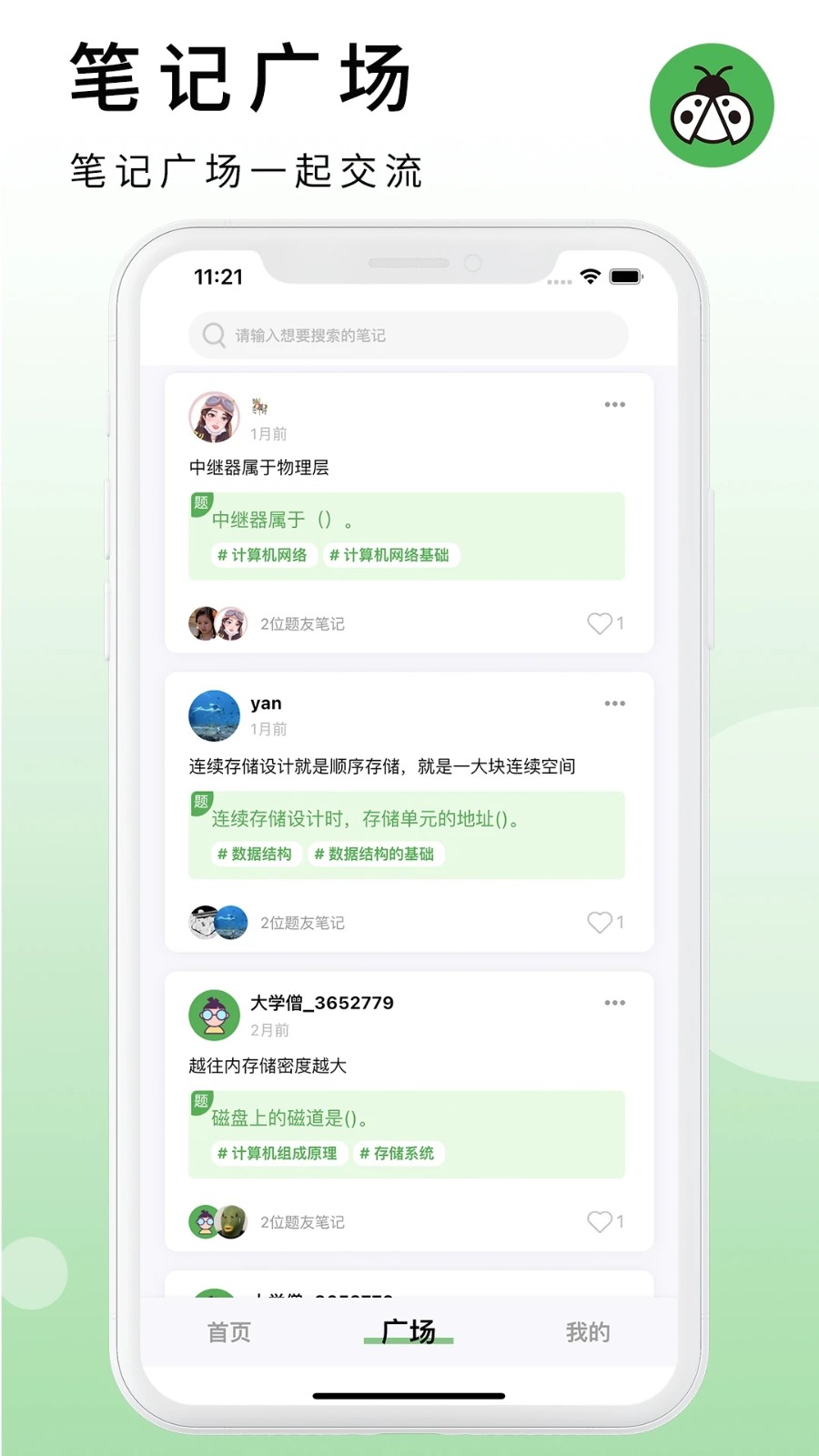 3、笔记广场:您可以与其他提问者交换笔记,共同讨论问题。优质笔记会获得推荐,形成良性互动。支持笔记点赞、评论和收藏,打造活跃的学习社区。