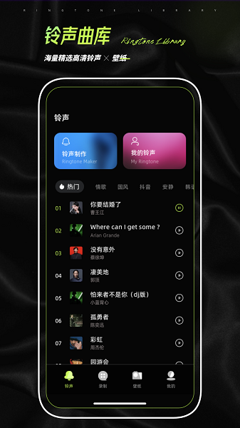 1、应用内置丰富的铃声资源库,你可以直接选择喜欢的音乐作为铃声,也可以通过剪辑功能创作专属铃声。所有操作都在手机上完成,无需借助电脑,方便快捷。