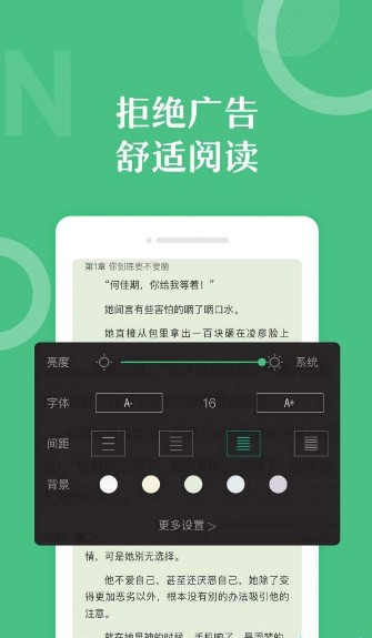 1、在观看小说的过程中,还可以调整字体大小或者调整字体颜色,支持护眼模式、夜间模式等多种显示方案,保护用户视力健康。