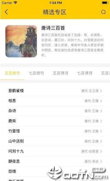 3、收录李白、杜甫、王维等1000+名作者的详细介绍,包括生平事迹、创作风格和代表作品,让用户在欣赏诗词的同时,也能深入了解作者的人生经历和创作背景。
