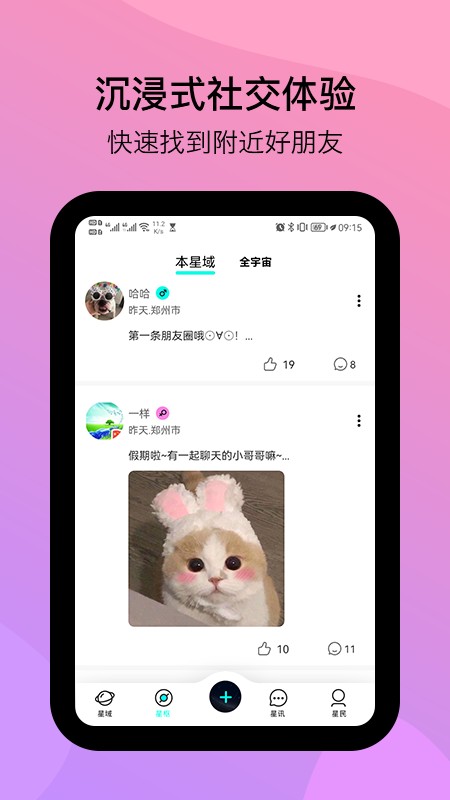 基于多维度的兴趣匹配算法,系统会为你推荐最合适的社交对象。创新的跨星域聊天功能让你可以突破地域限制,与全球用户实时互动。平台提供丰富的表情包和虚拟礼物系统,让线上交流更具表现力。视频通话采用智能美颜和背景虚化技术,让你随时随地都能展现最佳状态。独特的"兴趣星球"功能,让你可以围绕特定话题建立深度社交连接。