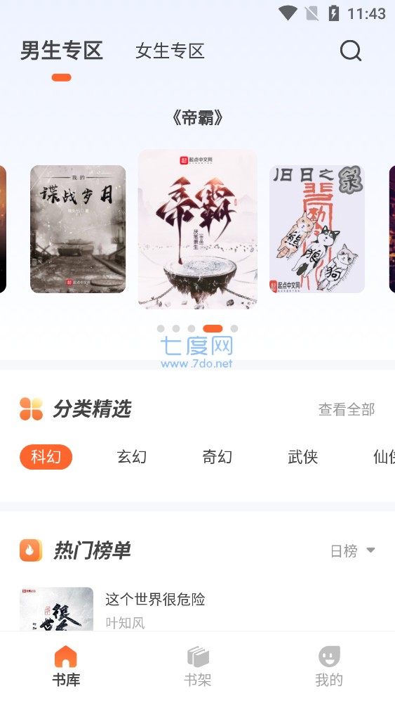 2、独立运营的精品书城设有男生专区和女生专区,基于大数据分析为用户智能推荐适合其性别偏好的小说作品,提升阅读体验;