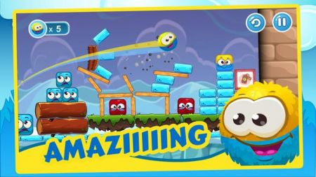 4、核心玩法围绕弹弓发射展开,玩家需要计算抛物线轨迹,利用场景中的弹簧、炸弹等道具,以最少的发射次数达成三星评价。