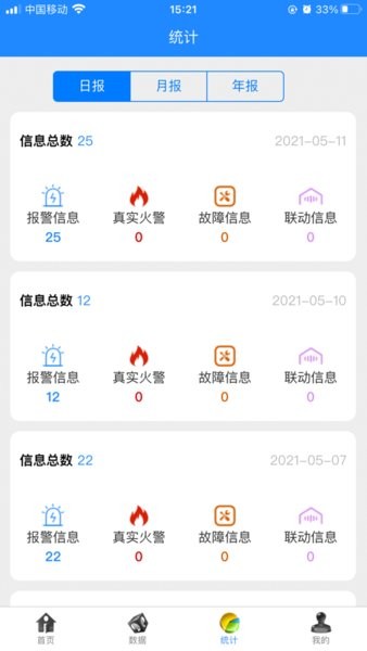 智赣119-联网单位APP为各级消防安全管理部门提供专业的管理工具,包括建筑总队、支队及联网单位等。操作员可通过个人账号登录系统,查看详细的警情分类统计数据和设备运行状态。
