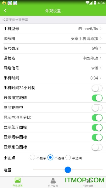 5、苹果版电量百分比可以选择显示或不显示:完美模拟iPhone状态栏细节,包括精确的电量显示和信号强度。