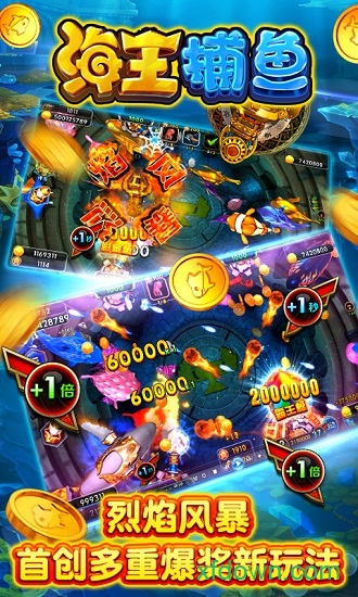1. 玩家通过滑动屏幕控制炮台方向,点击发射渔网捕捉鱼类。