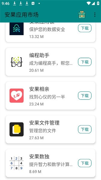 安果应用市场手机版是一款功能强大且安全可靠的应用下载平台,汇集了海量优质软件资源,涵盖游戏、工具、电子书等多种类型。用户无需四处搜索,在这里就能轻松找到所需应用并一键下载安装,操作流程简单高效。平台严格筛选所有上架应用,确保无毒无广告,为用户提供安全放心的下载环境。无论是日常工具还是娱乐应用,安果应用市场都能满足您的需求,是值得信赖的手机应用管家。