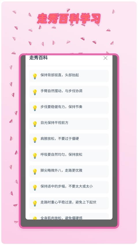2、通过视频课程学习专业走秀技巧,每个动作都配有慢动作演示和多角度拍摄,确保用户能清晰掌握每个细节;