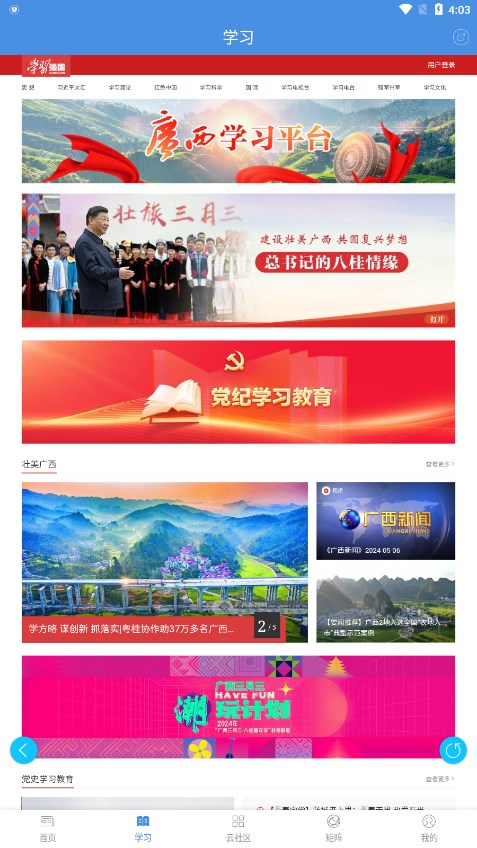 汇聚热闻,畅览天下大事;采用智能算法实现个性化推荐,支持语音播报功能,早晚间推出《象州晨报》《夜读》音频栏目。独家开设"问政"频道,政府部门需在24小时内回应市民咨询,问题解决率达93%。