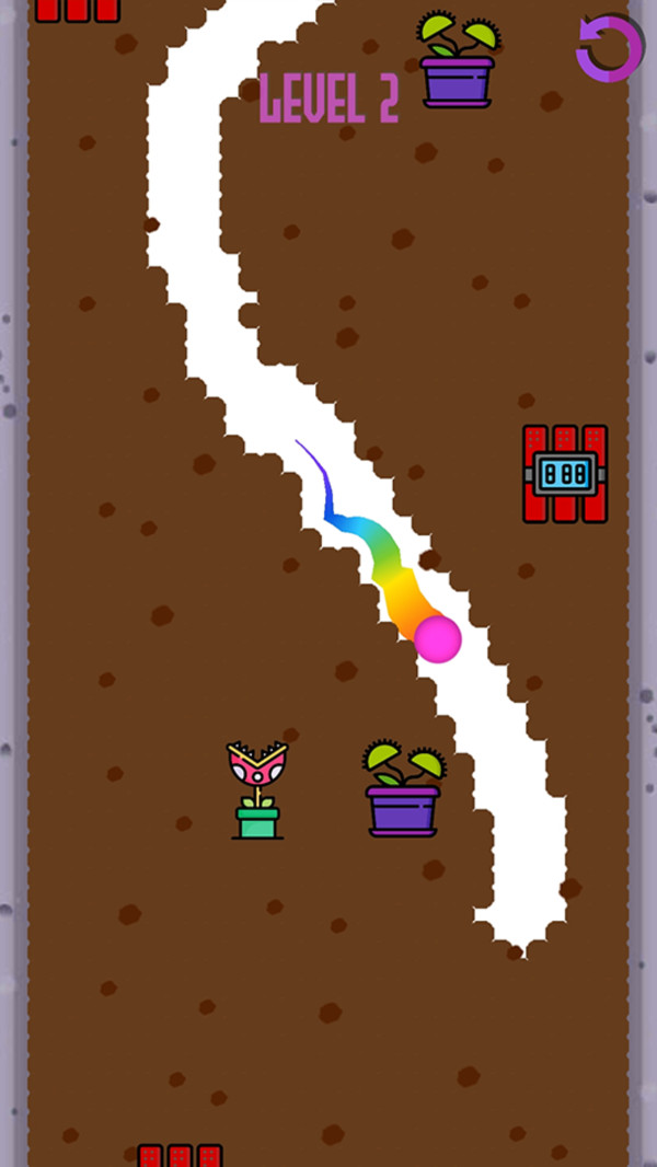 3、在你挖掘小球的同时可能会碰到各种的障碍物挑战,避开他们。障碍物的种类非常多样,除了静态的炸弹和植物外,还有移动的陷阱和突然出现的障碍。你需要时刻保持警惕,灵活应对各种突发情况。