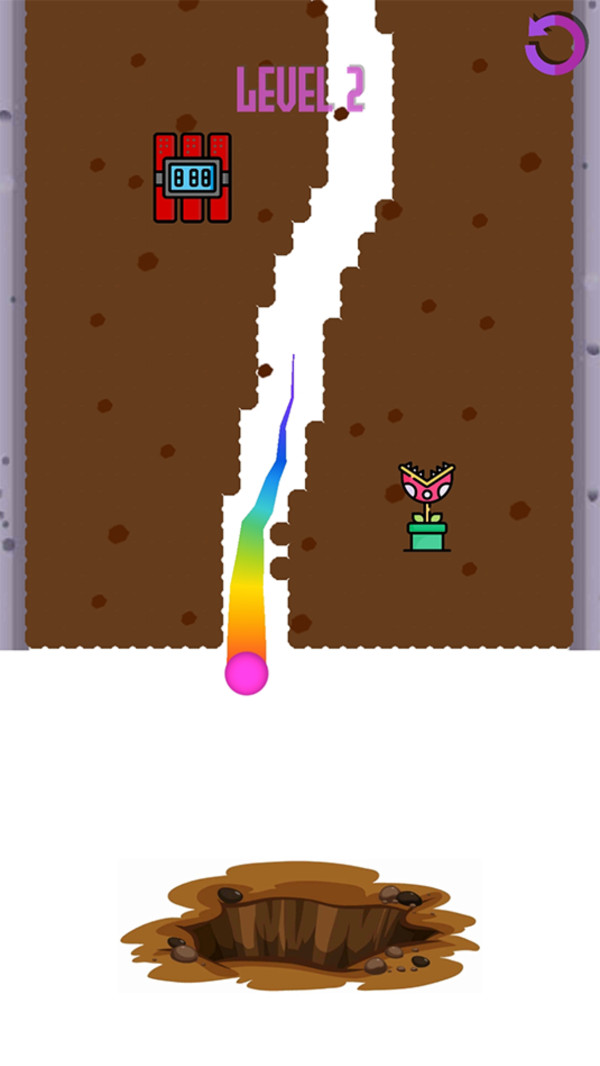 1、挖掘松软的土壤,自己的的小球可以根据你的轨迹完成运作。游戏采用了真实的物理引擎,小球的滚动和土壤的塌陷效果都非常逼真。你可以通过不同的挖掘角度和力度来控制小球的运动方向,体验独特的操作手感。