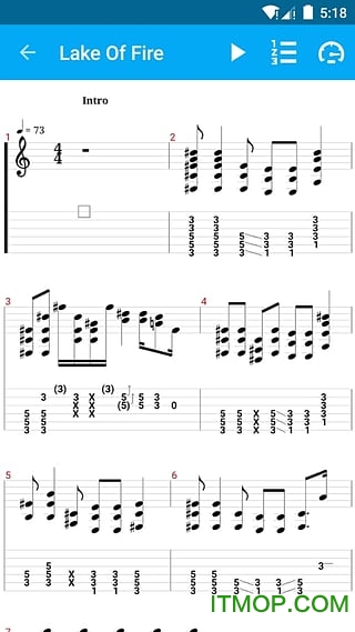 - GTP乐谱提供轨道音量调节功能,可单独静音吉他轨道,将乐谱作为伴奏使用