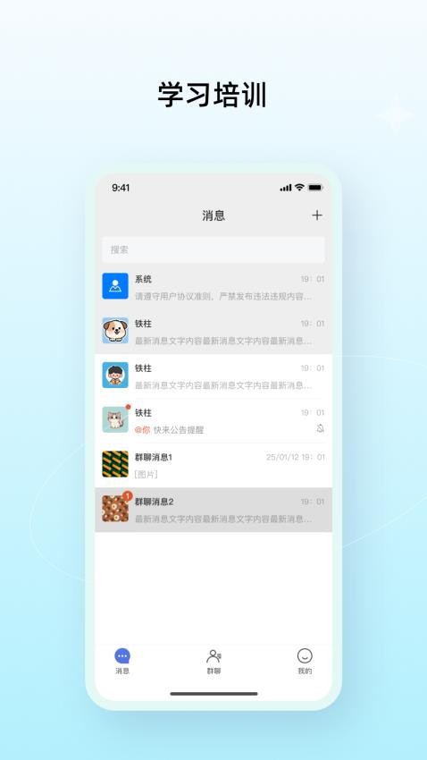 群聊互动消息及时通知提醒,便于能及时在应用中查看,并能立即在线回复;支持消息置顶、@全员等特殊提醒功能,确保重要信息不被遗漏。用户可自定义通知方式,选择接收特定类型的消息提醒。