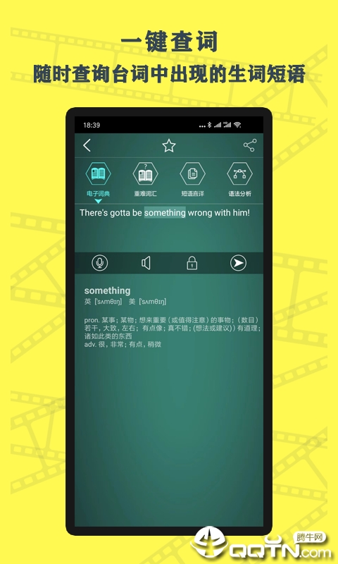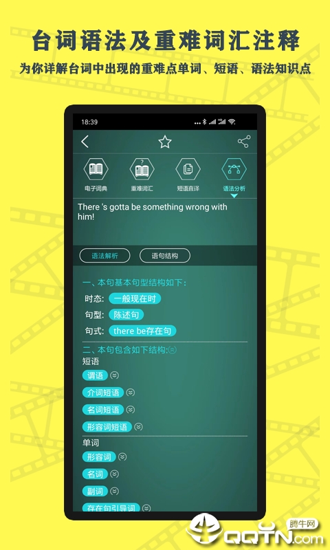 3、智能查询系统,一键即可获取台词中的单词、短语释义,重点词汇配有详细讲解,语法知识点解析深入浅出,帮助用户全面掌握语言要点。