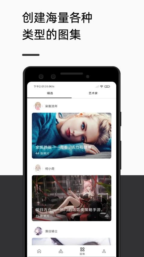 用户可以创建个性化图集,按主题、风格等分类收藏壁纸。图集支持自定义命名、排序、分享等功能,方便用户整理和管理自己的壁纸收藏。