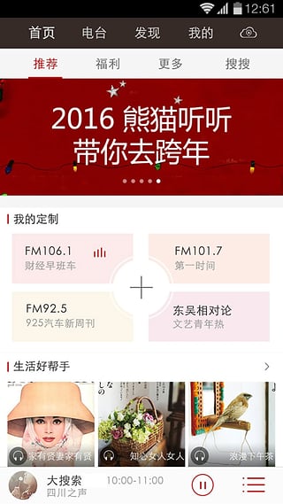 3、熊猫听听app大量电台综艺节目迅速接听:应用优化了音频加载技术,即使是网络环境较差的情况下,也能保证电台节目的快速加载和稳定播放。