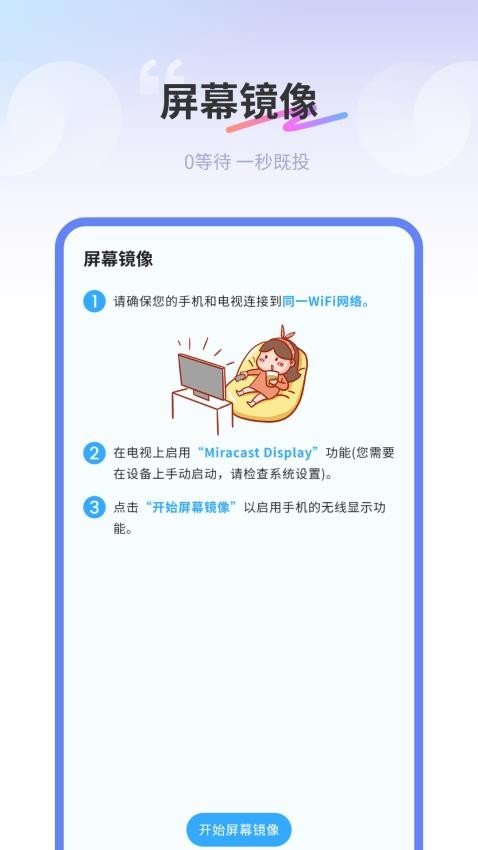 实现手机屏幕的实时镜像投射,完整呈现手机操作界面。配有详细的使用指南,帮助用户快速掌握镜像功能,适用于会议演示、手游直播等多种应用场景。