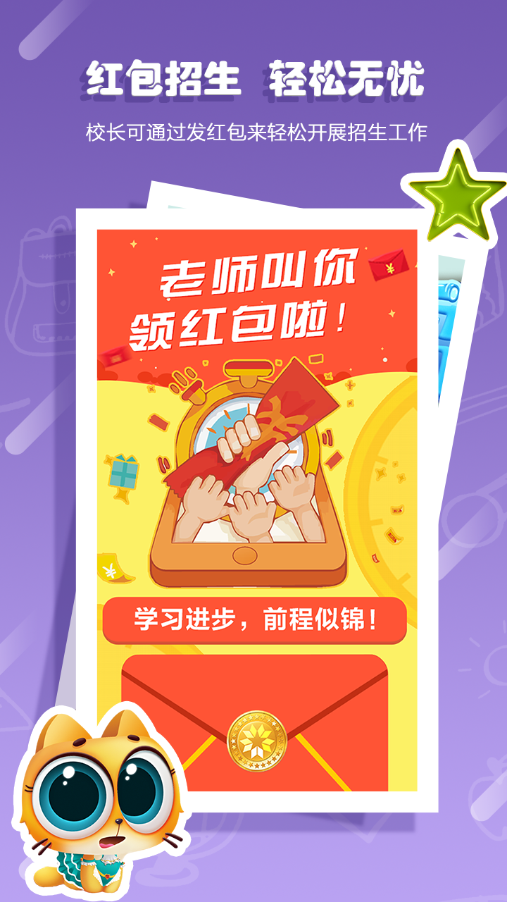 金牌学霸app以激励为核心,通过寓学于乐的方式激发用户的学习兴趣。其教学管理功能设计简洁高效,让教师能够轻松布置作业、批改试卷,同时家长也能随时查看孩子的学习情况。此外,app还提供全面的学习数据分析,帮助家长和教师精准掌握孩子的学习动态。红包招生功能则为教育机构提供了全新的招生方式,让招生工作变得更加轻松高效。无论是学习还是教学管理,金牌学霸都能为您提供一站式解决方案。
