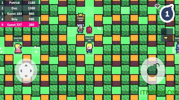 在这款充满活力的炸弹人游戏中,你将与世界各地的玩家展开激烈对决。游戏支持30人同场竞技,通过投掷炸弹摧毁障碍物、收集能量道具来增强实力。独特的积分系统让你可以解锁60多个个性鲜明的角色,每个角色都拥有专属的关卡挑战。游戏还设有全球排行榜,让你可以与全世界的玩家一较高下。无论是休闲娱乐还是竞技对抗,都能满足不同玩家的需求。