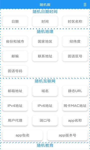 趣味随机数涵盖了丰富的随机生成功能,包括时间日期、随机数、数字、汉字、颜色、车牌号、邮箱地址、邮编、地理、教育、体育等多种类型。无论是需要随机选择日期、生成幸运数字,还是模拟车牌号、邮箱地址,这款应用都能轻松实现。其多样化的功能设计,让用户在不同场景下都能找到合适的工具,提高效率,增添趣味性。