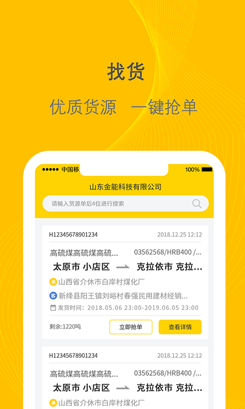 2、一键抢单,货运无忧:优化后的抢单系统响应速度极快,司机只需轻点屏幕就能完成接单操作,彻底告别传统繁琐的接单流程。