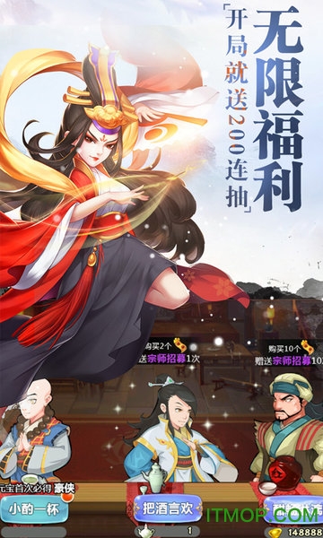 1.创角送满级VIP,58888元宝,免费领传说全攻型侠客--乔帮主。乔帮主作为游戏中最强输出型侠客之一,拥有横扫千军的降龙十八掌技能,是前期推图的绝佳选择。