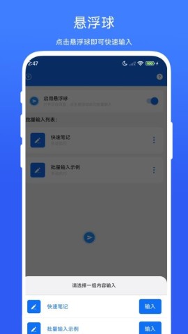批量输入助手app是一款革命性的文字输入效率工具,专为需要频繁填写表单的用户设计。它通过智能化的预设功能,让重复性输入变得简单高效。无论是日常办公中的报表填写,还是电商购物时的收货信息录入,这款应用都能显著提升操作速度。其独特的悬浮球设计让用户可以在任何应用界面快速调用预设内容,彻底告别繁琐的手动输入。特别适合客服人员、电商从业者以及需要处理大量表单的办公人群,让数据录入工作变得轻松愉快。