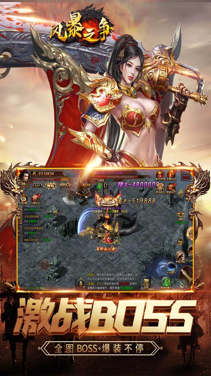 《风暴之争BTBOSS爆充值版》是一款充满激情的即时战斗ARPG传奇类游戏,为玩家带来千人同屏的震撼体验。游戏拥有多样化的PVP玩法模式,无论是热血对战还是自由探索,都能满足玩家的需求。三大经典职业可供选择,丰富的隐藏地图等待发掘,让玩家在恢弘大气的场景中感受西汉末年群雄逐鹿的历史氛围。复古写实的画风完美还原传奇游戏的经典韵味,从静谧的新手村到阴森的祖玛神殿,每一处细节都充满情怀。喜欢传奇类游戏的玩家绝对不能错过这款诚意之作!