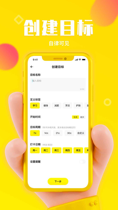 更多特色功能,正在路上,我们将不负等待,让"你的目标"实现变得更轻松......包括数据分析、成就系统、专属社区等创新功能正在开发中,未来会为用户带来更完善的自律体验。