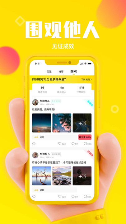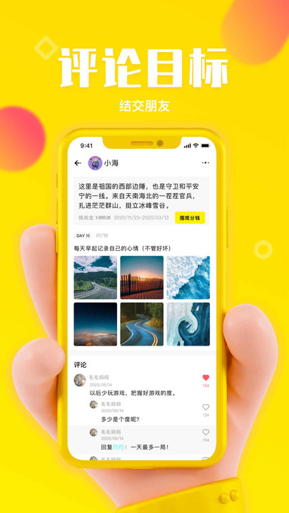 在APP内围观别人的目标,对目标发起人多一些互动和鼓励,就有机会分标的挑战金。互动越多,分的越多哦!这个功能不仅增加了趣味性,还能让你在鼓励他人的同时获得实际奖励,形成良性循环。