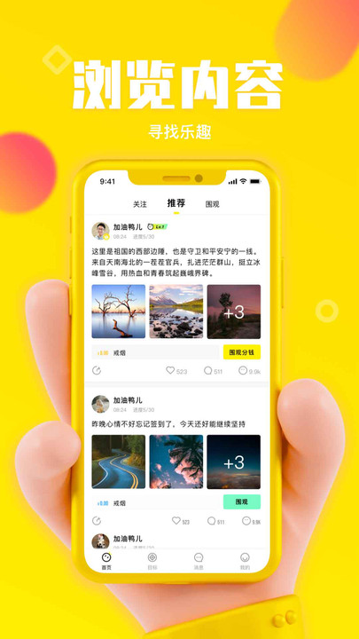 3、围观他人,为自己的目标打打气。通过浏览他人的奋斗故事获得灵感,同时也能收获来自陌生人的鼓励,让坚持不再孤单。