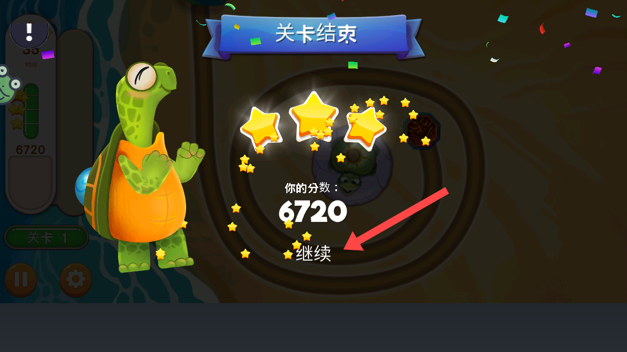 3、关卡结算时会显示【你的分数:6720】和星级评价,三星通关需要同时满足时间剩余、分数要求和特殊任务。点击【继续】前别忘了查看本关的隐藏成就,比如"量子大师"需要单次消除8个弹珠,"时空旅者"则要求触发3次维度穿梭。这些成就奖励能解锁特殊道具和皮肤。