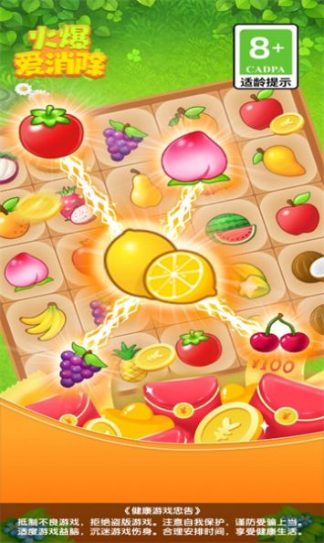2、道具设计为玩家提供了更多选择和策略,通过使用道具增加分数、消除特定水果等;游戏提供了多种功能各异的道具,如炸弹、彩虹方块等,合理使用这些道具可以帮助玩家更轻松地完成挑战。