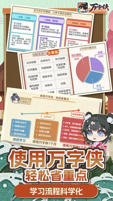 万字侠APP手机版是一款功能全面的语文学习平台,通过科学的学习规划和丰富的教学资源,帮助学生系统提升语文能力。软件支持个性化学习计划定制,提供多种高效的学习策略,让语文学习变得轻松有趣。创新的互动模式和奖励机制更能激发学习动力,是提升语文成绩的理想选择。